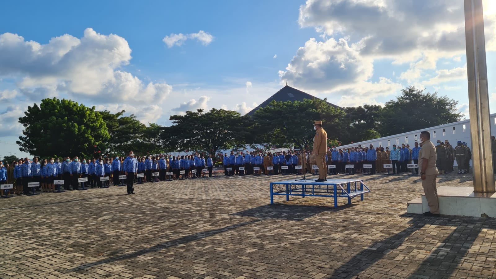 SAUMLAKI,N25NEWS.id-Bupati Kabupaten Kepulauan Tanimbar, Petrus Fatlolon, SH.MH, memimpin apel pagi, di Lapangan Apel Kantor Bupati Kabupaten Kepulauan Tanimbar, bersama seluruh Kepala OPD, Aparatur Sipil Negara, di lingkup Pemerintahan Kabupaten Kepulauan Tanimbar, Selasa, (17/5).