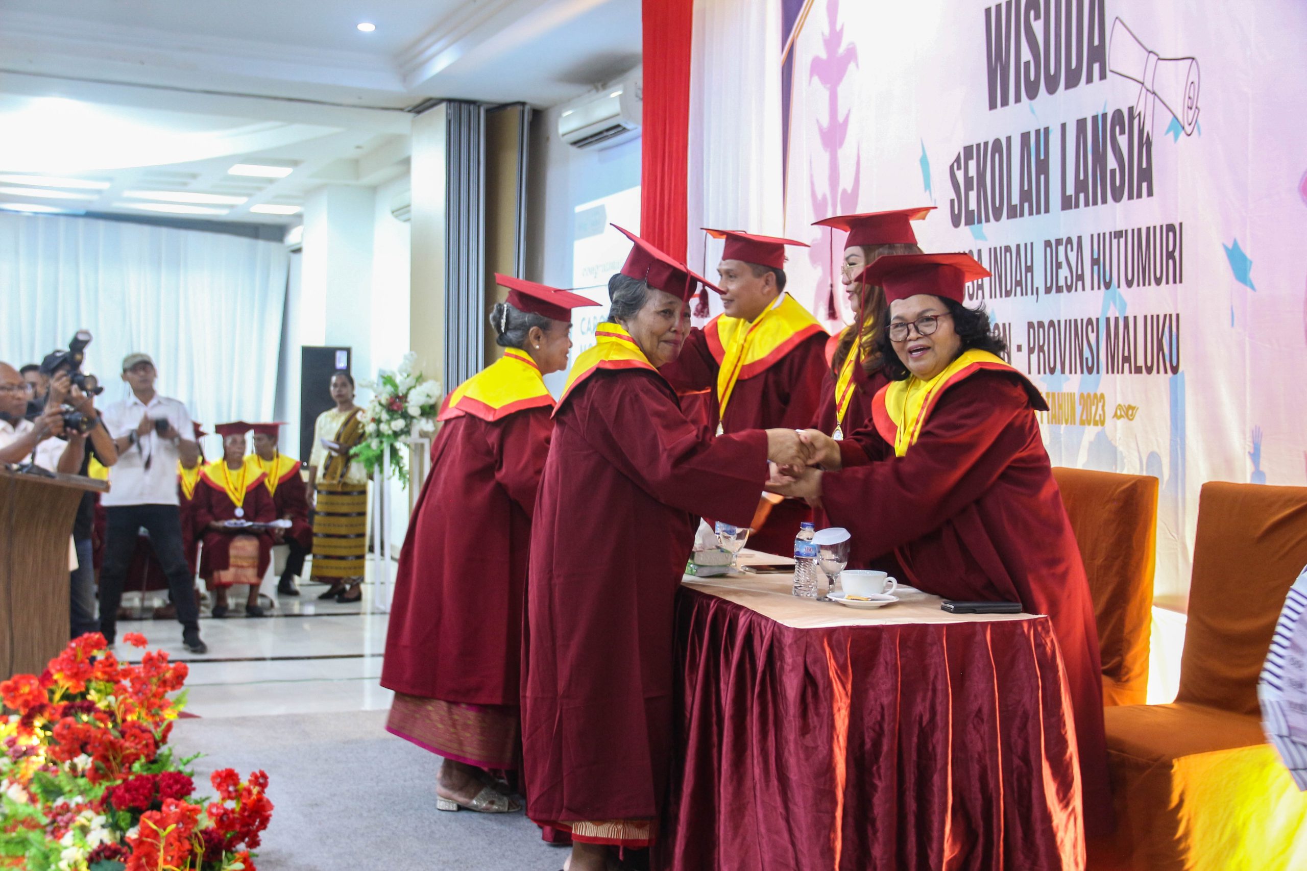 AMBON,N25NEWS.id-Sebanyak 31 orang lansia mengikuti prosesi wisuda setelah berhasil mengikuti pendidikan sekolah lansia selama 6 bulan,di Sekolah Lansia Bina Keluarga Lansia (BKL) Nusa Indah,yang berlangsung di Marina Hotel Kota Ambon,Rabu (29/11).