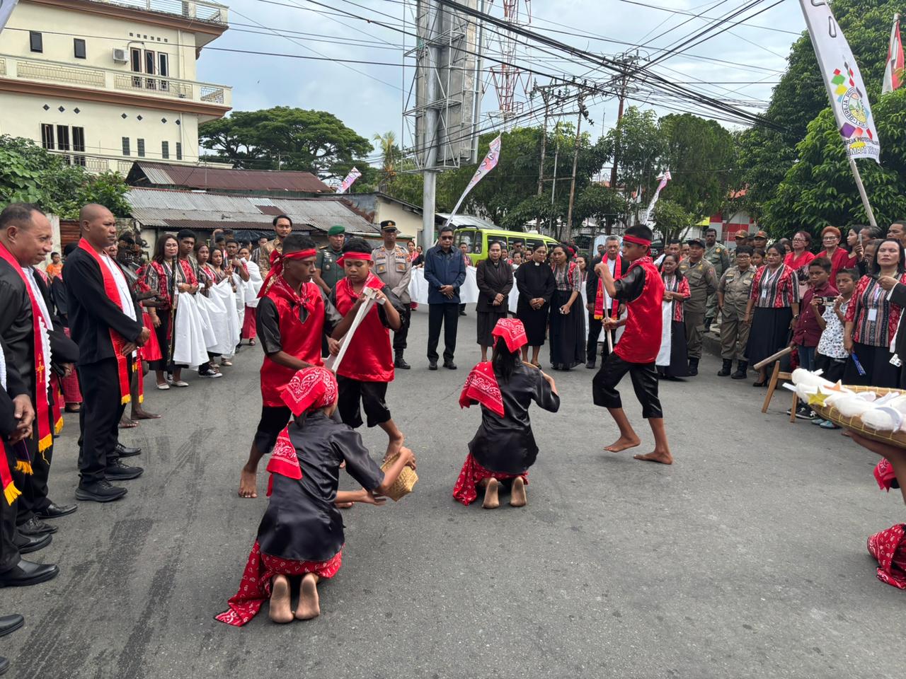 Walikota Ambon Bodewin Wattimena Di sambut Tarian Cakalele Anak-Anak Sektor El ROy Pada Peridangan Jemaat GPM Nehemia Ke 42