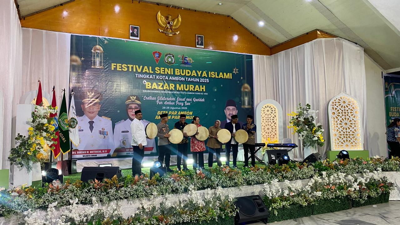 AMBON,N25NEWS.id-Wali Kota Ambon, Bodewin Wattimena secara resmi membuka kegiatan Festival Seni Budaya Islami dan Pemilihan Duta Qasidah Kota Ambon tahun 2025.yang berlangsung Gedung Ashari Al-Fatah Ambon,Kamis (28/8/2025).