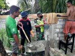 Malteng – Koramil 1504-04/Salahutu gelar kegiatan kerja bakti pembuatan pengecoran pagar tembok rumah warga Dusun Binaan Hurnala Rupaitu, Desa Tulehu, Kec. Salahutu,