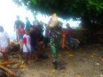 Peduli Warga Babinsa Koramil 1511-05/Wonreli, Bantu Angkat Pasir Di Wilayah Binaan