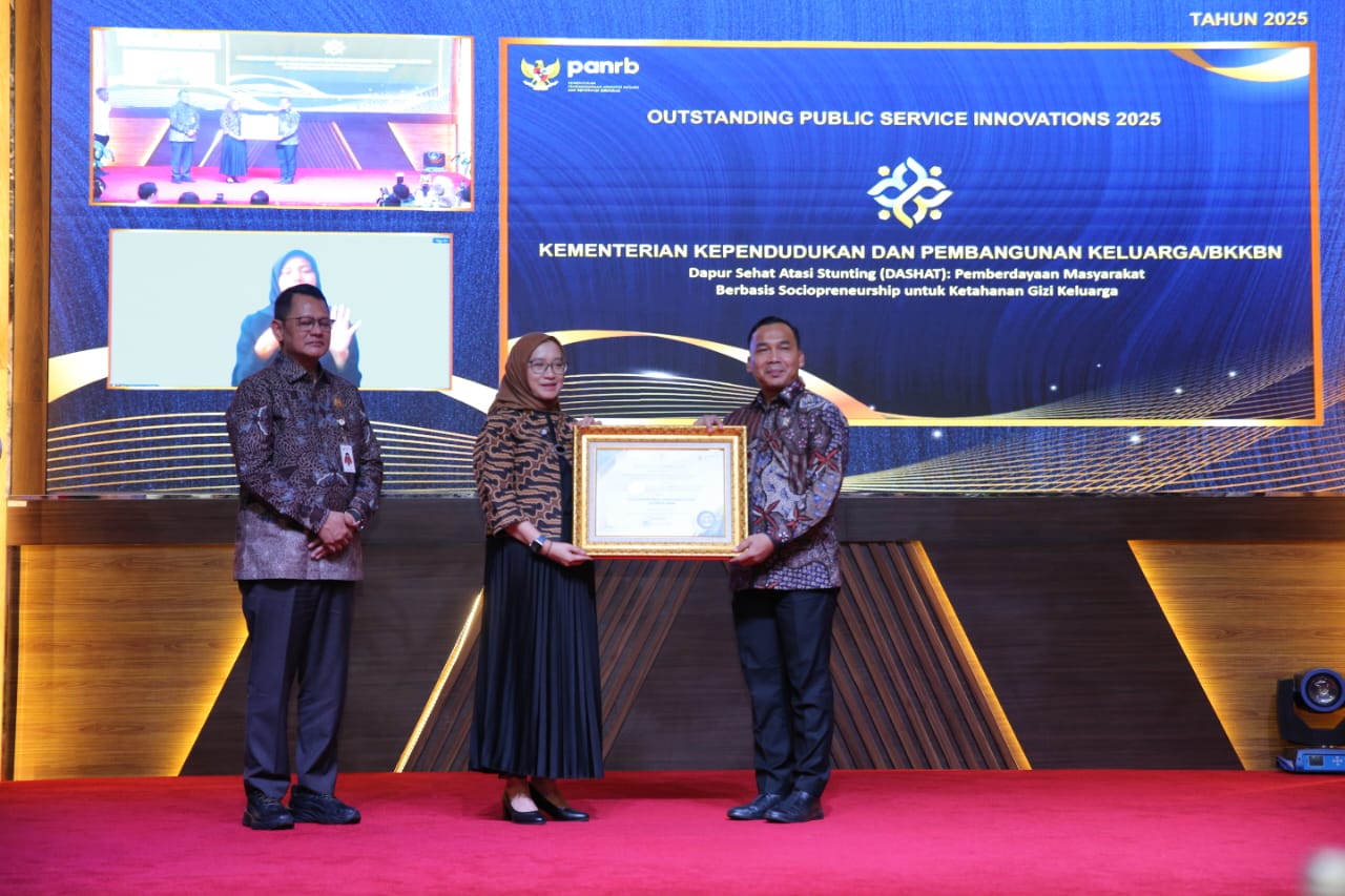 JAKARTA,N25NEWS.id – Keberhasilan konkret program “Dapur Sehat Atasi Stunting (DASHAT)” dalam menurunkan angka stunting secara signifikan membawa Menteri Kependudukan dan Pembangunan Keluarga/Kepala BKKBN, Dr. Wihaji, S.Ag, M.Pd, menerima Penghargaan Outstanding Public Service Innovations (OPSI) 2025 langsung dari Menteri PANRB, Rini Widyantini, di Jakarta, Senin (15/12/2025).