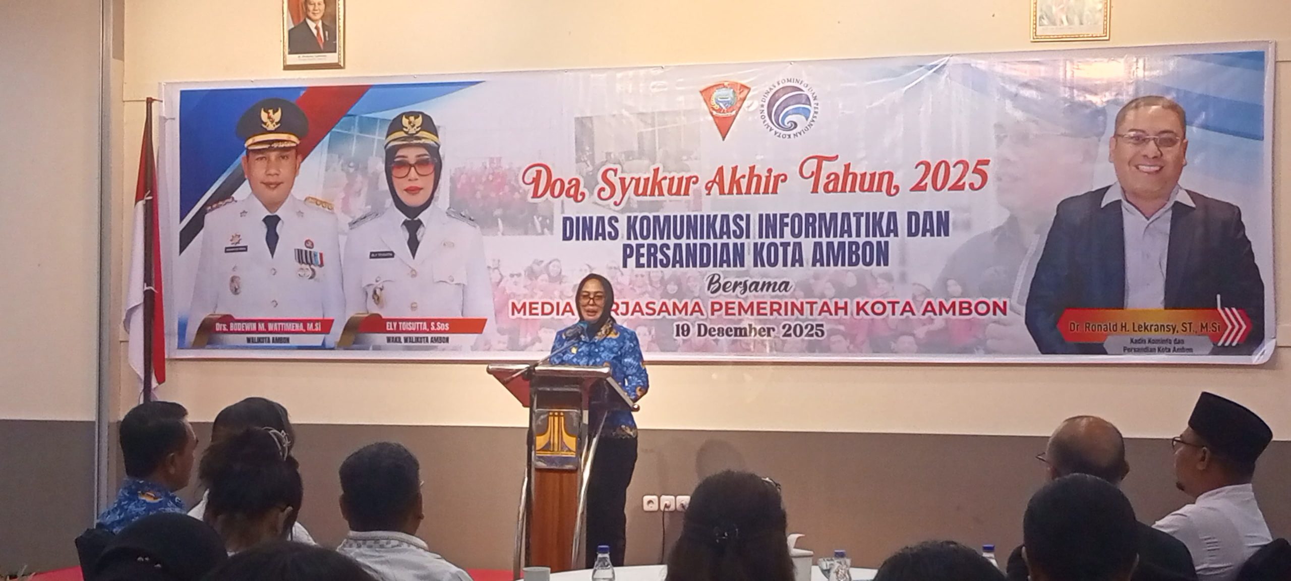 AMBON,N25NEWS.id-Dinas Komunikasi dan Informatika dan Persendian (DisKominfosandi) Kota Ambon, mengadakan doa syukur akhir tahun 2025 bersama Media Kerja sama yang berlangsung di Manise Hotel,Jumat ( 19/12).