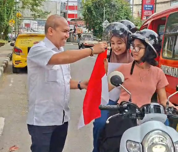 AMBON,N25NEWS.id – Terkait surat edaran Walikota Ambon tentang pembagian bendera Merah Putih kepada masyarakat maka DPRD Kota Ambon telah melakukan, dan ini terlihat jelas ketika seluruh staf DPRD kota Ambon turun langsung kelapangan untuk membagikan bendera merah putih kepada masyarakat yang melintasi tepat depan kantor DPRD kota Ambon baik pejalan kaki maupun kendaraan roda empat dan dua.