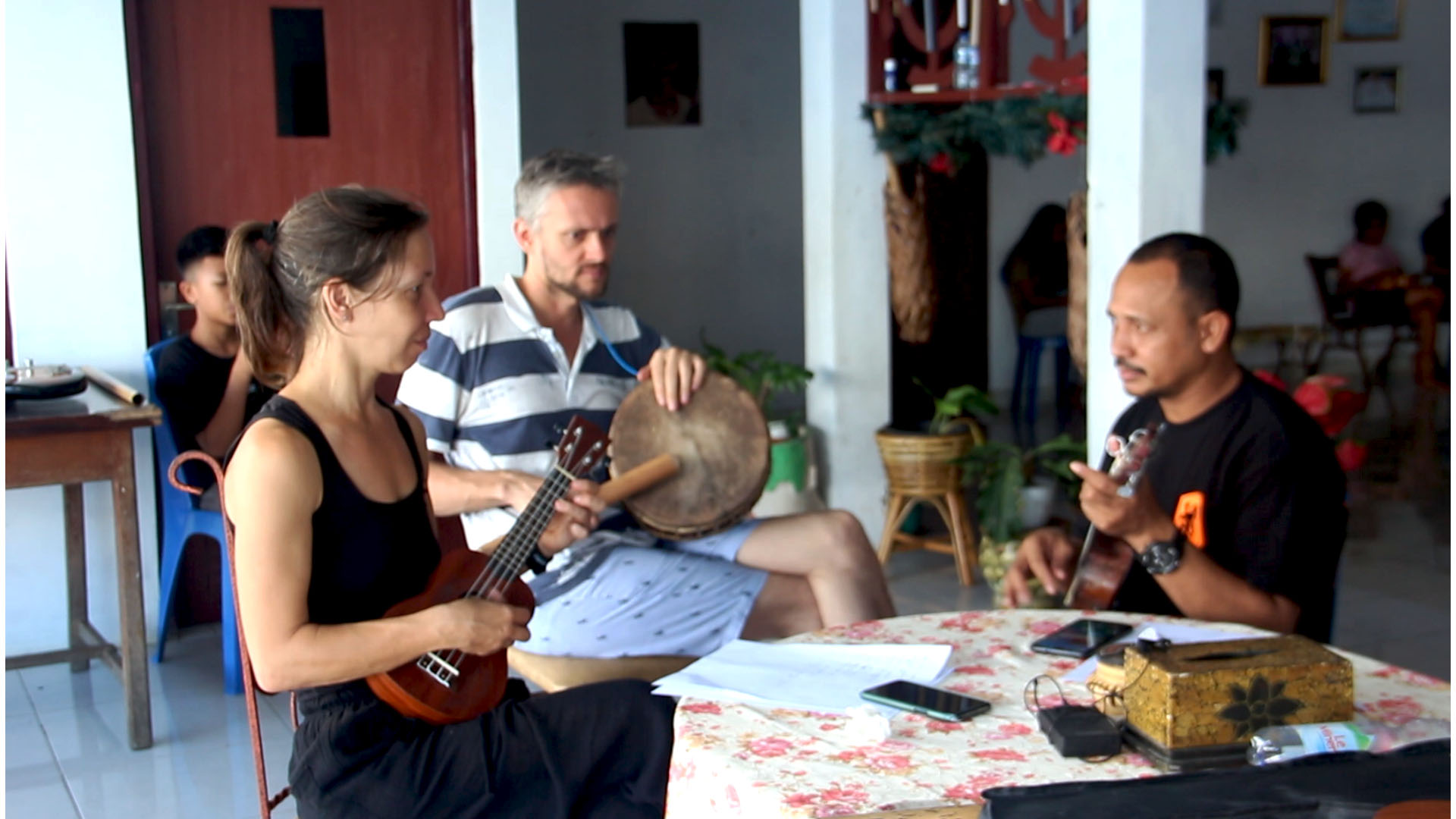 Sementara itu,Alex mahasiswa asal Ukraina mengatakan bahwa tujuan mereka datang ke Ambon (Amahusu) untuk belajar bahasa Indonesia dan belajar bermain musik ukulele dan Totobuang.