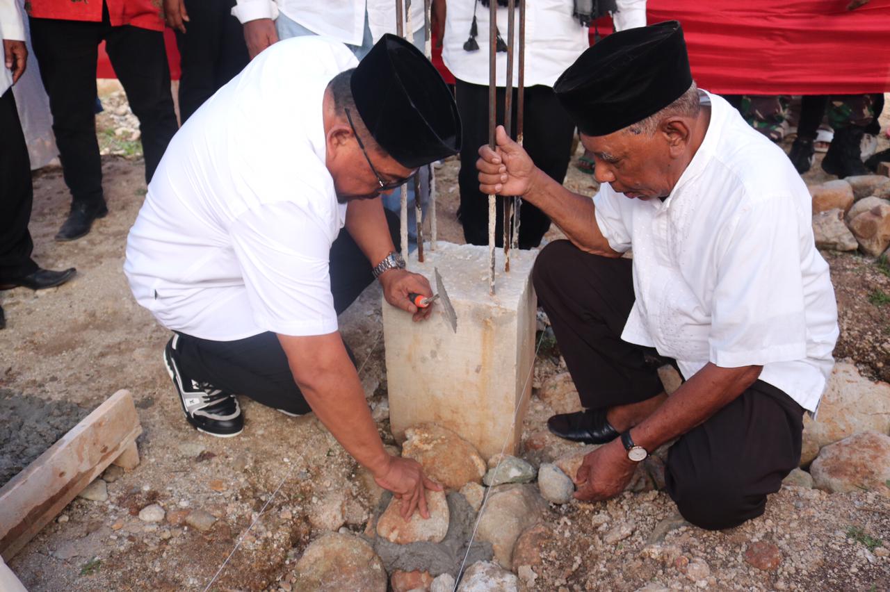 AMBON-Gubernur Maluku Murad Ismail, meletakkan batu pertama pembangunan Masjid Nurul Ikhlas, di Dusun Ume Kau-Kampung Baru, Negeri Tulehu, Minggu sore, (9/10/2022).