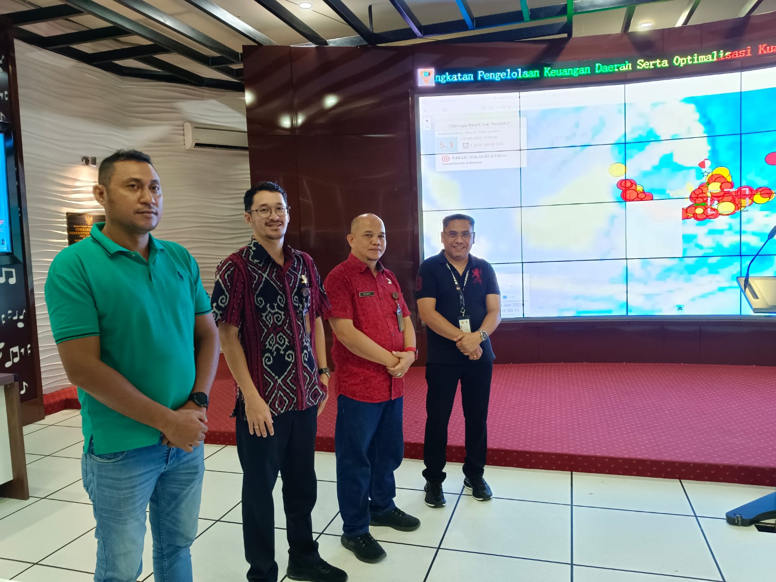 AMBON,N25NEWS.id-Plt. Kepala Dinas (Kadis) Kominfo dan Persandian Kota Ambon, Ronald H. Lekransy, menerima kunjungan dari Kepala Stasiun Geofisika Klas I Ambon Badan Meteorologi Klimatologi dan Geofisika (BMKG) Provinsi Maluku, Djati Cipto Kuncoro, Jumat (12/1/24) di Command Center (CC) lantai IV Balai Kota.
