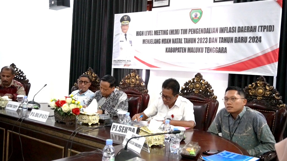 LANGGUR-Menjelang Hari Besar Keagamaan Nasional (HKBN) Natal 2023 dan Tahun Baru 2024, maka Tim Pengendalian Inflasi Daerah (TPID) menggelar High Level Meeting (HLM) di Kabupaten Maluku Tenggara,Jumat (10/11).