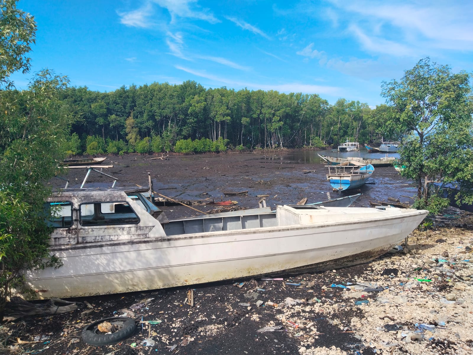 Hutan bakau yang seharusnya menjadi benteng alami pertahanan pantai, kini diduga habis ditebang dan dirusak.