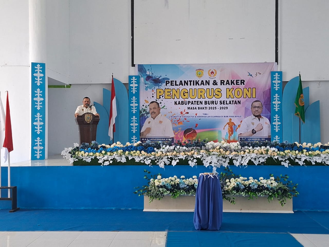 BURSEL,N25NEWS.id-Komite Olahraga Nasional Indonesia (KONI) Kabupaten Buru Selatan (Bursel) periode 2025-2029 secara resmi di lantik oleh Ketua Umum KONI Provinsi Maluku,Sam Latuconsina,Sabtu (6/12).