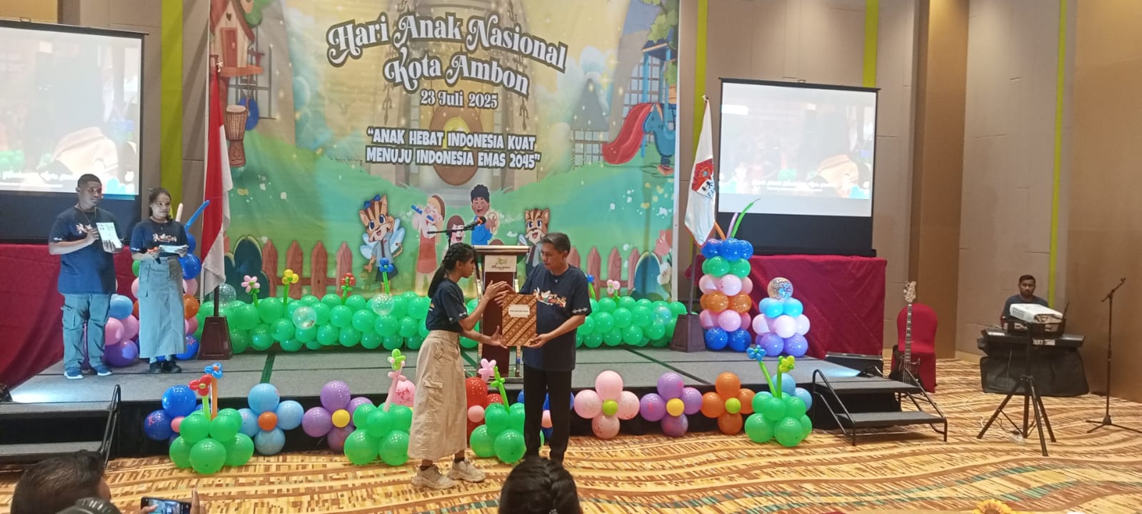 Kegiatan Hari Anak untuk Kota Ambon dilaksankan di Zest Hotel,Rabu (23/7/2025) juga dihadiri oleh Wakil Wali Kota Ambon,Elly Toisutta,Ketua DPRD Moritz Tamaela dan Forkopimda Kota Ambon.