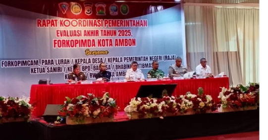 AMBON,N25NEWS.id-Pemerintah Kota (Pemkot) Ambon, bersama Forum Koordinasi Pimpinan Daerah (Forkopimda) menggelar Rapat Koordinasi (Rakor ) Evaluasi Akhir Tahun,yang dihadiri oleh kepala Desa,Lurah,Raja serta ketua RT/RW,yang dipusatkan di Maluku City Mall (MCM),Rabu (17/12/2025).