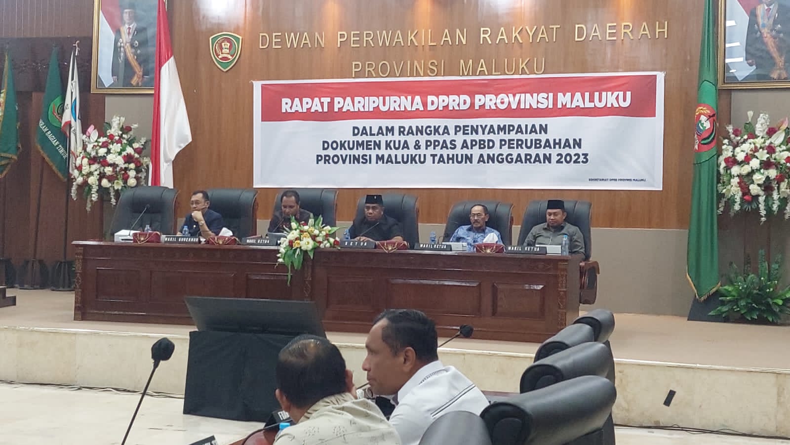 Penyerahan KUA-PPAS dalam bentuk dokumen APBD Perubahan 2023, dalam paripurna masa sidang I, diserahkan langsung Wakil Gubernur Maluku, Barnabas Orno dan diterima Wakil Ketua DPRD Maluku, Melkianus Sairdekut, di dampingi Ketua DPRD, Benhur George Watubun, Wakil Ketua, Azis Sangkala dan Razid Efendy Latuconsina serta para anggota lainnya yang hadir.