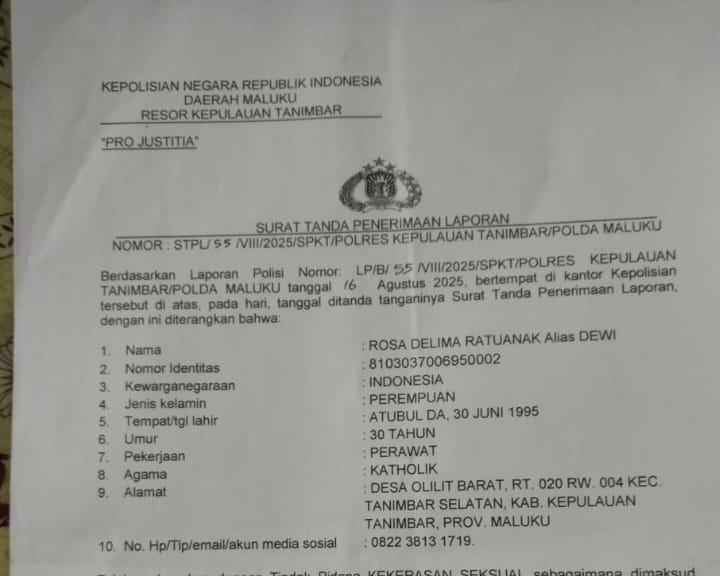 SAUMLAKI,N25NEWS.id-Dihadapkan pada ujian penegakkan hukum dalam kasus dugaan kekerasan Seksual.Merujuk pada laporan Polisi No. LP/B/VIII/2025/SPKT/Polres, kasus ini menyoroti pentingnya penegakkan hukum yang efektif.