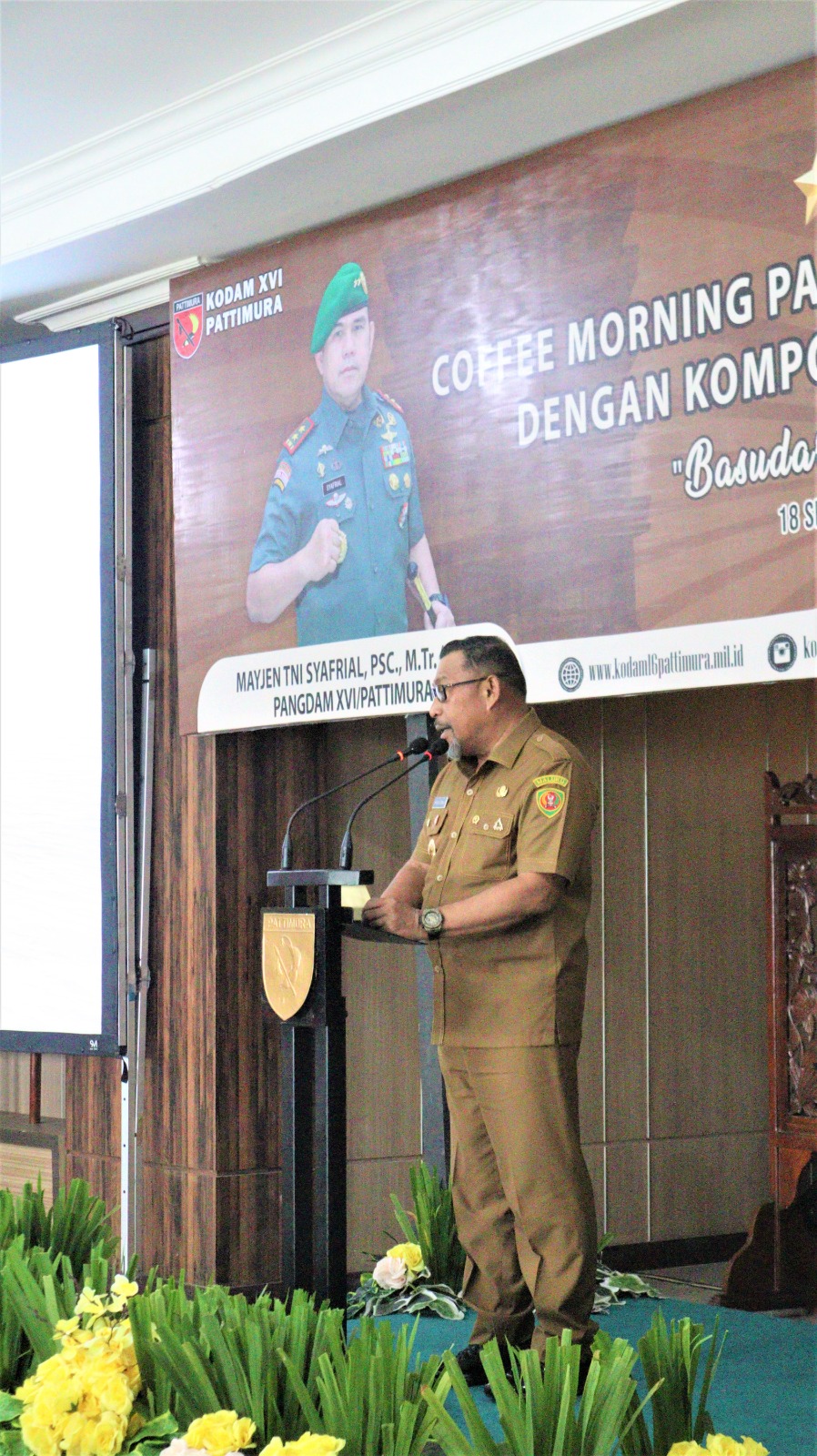 “Atas nama Pemerintah Daerah juga, saya menyampaikan apresiasi atas pelaksanaan coffee morning yang dilaksanakan oleh Pangdam sebagai media silaturahmi antara Pemda, TNI/Polri, dan seluruh komponen Masyarakat di daerah ini,”ujarnya.