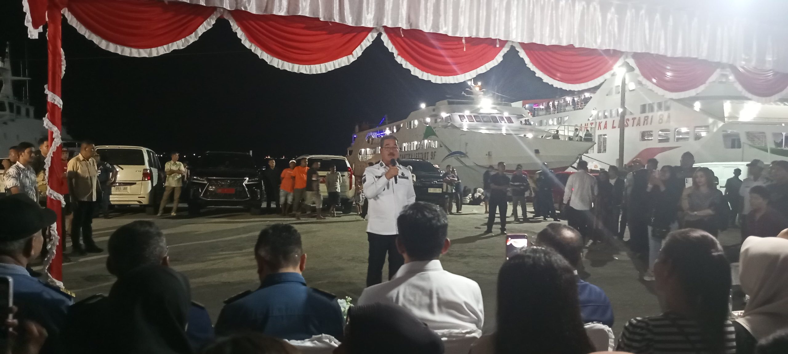 “Penumpang yang mendapat tiket gratis,dapat menjaga ketertiban dan keamanan diatas kapal,ingatlah mudik ini,bukan perjalanan fisik saja,tetapi juga batin, karena perjalanan pulang untuk berhari raya dengan keluarga,” pintanya.
