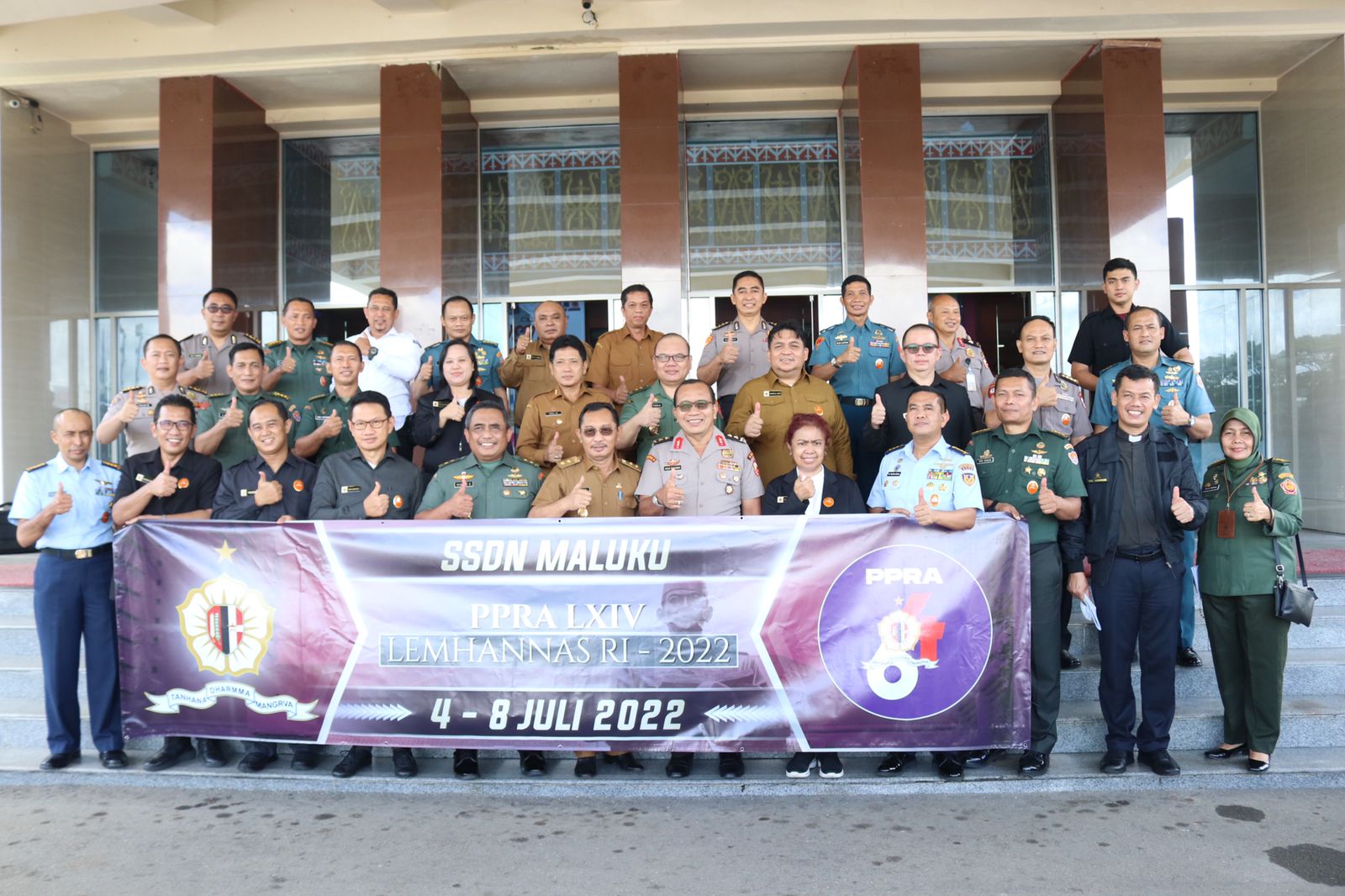 Ambon-Peserta Program Pendidikan Reguler Angkatan (PPRA) LXIV Tahun 2022 Lembaga Ketahanan Nasional RI (Lemhanas) RI mengikuti Studi Strategi Dalam Negeri (SSDN) pada Senin, 4 Juli 2022 sampai 8 Juli 2022 di Provinsi Maluku. Seluruh Peserta dibagi menjadi empat kelompok dan melaksanakan SSDN keempat provinsi berbeda, yakni Provinsi Sulawesi Tengah, Provinsi Jawa Timur, Provinsi Sulawesi Utara dan Provinsi Maluku.
