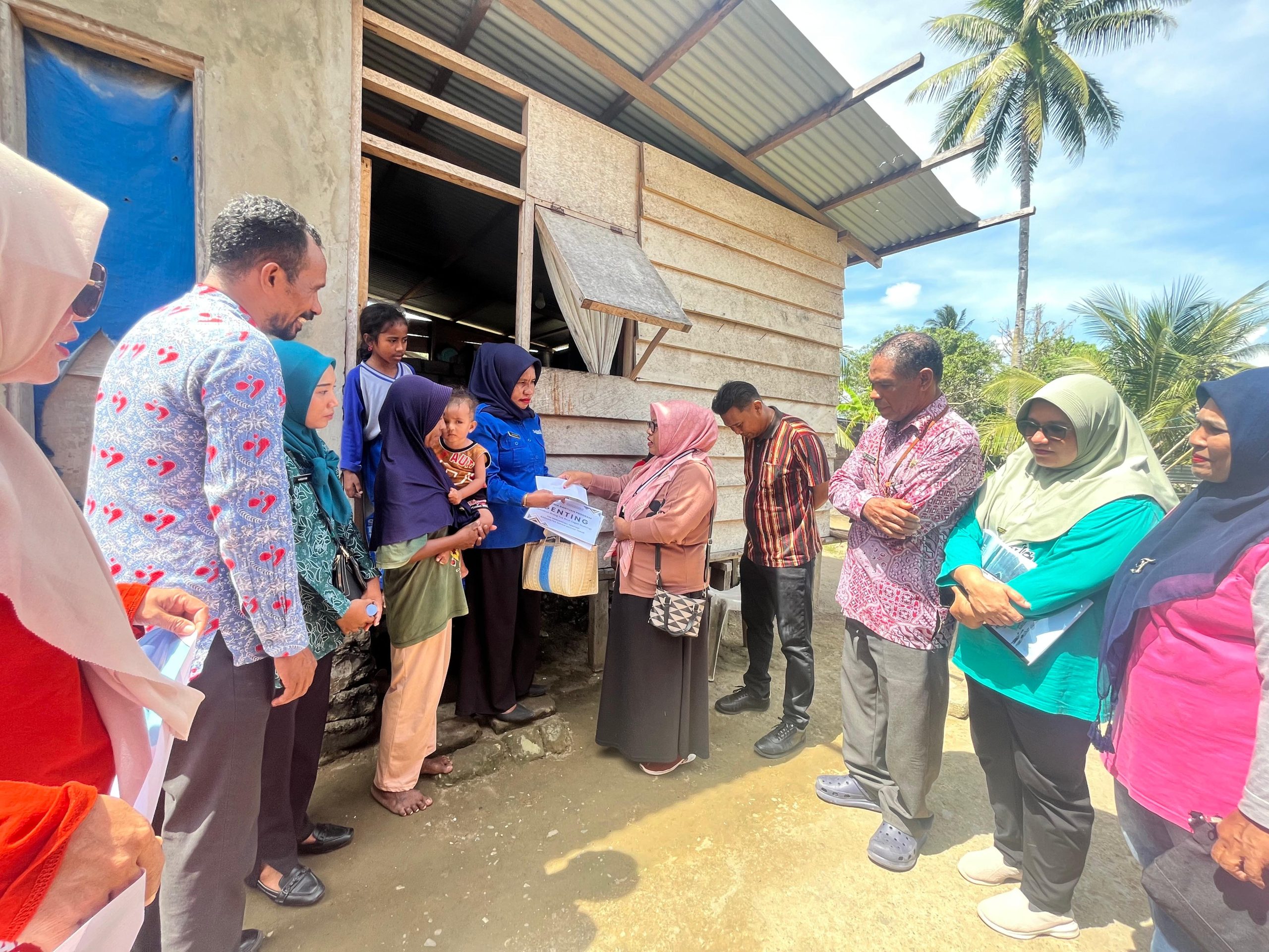 Sebanyak 6 KRS Sasaran Genting mendapat intervensi bantuan nutrisi dari para orang tu Asuh (OTA) . Tim bersama para Orang Tua Asuh melaksanakan aksi kunjungan rumah (door-to-door) untuk menyalurkan Bantuan Nutrisi kepada Keluarga Berisiko Stunting (KRS) yang terdiri dari 4 Baduta di Desa Bula dan 2 ibu menyusui di Desa Sesar secara simbolis.