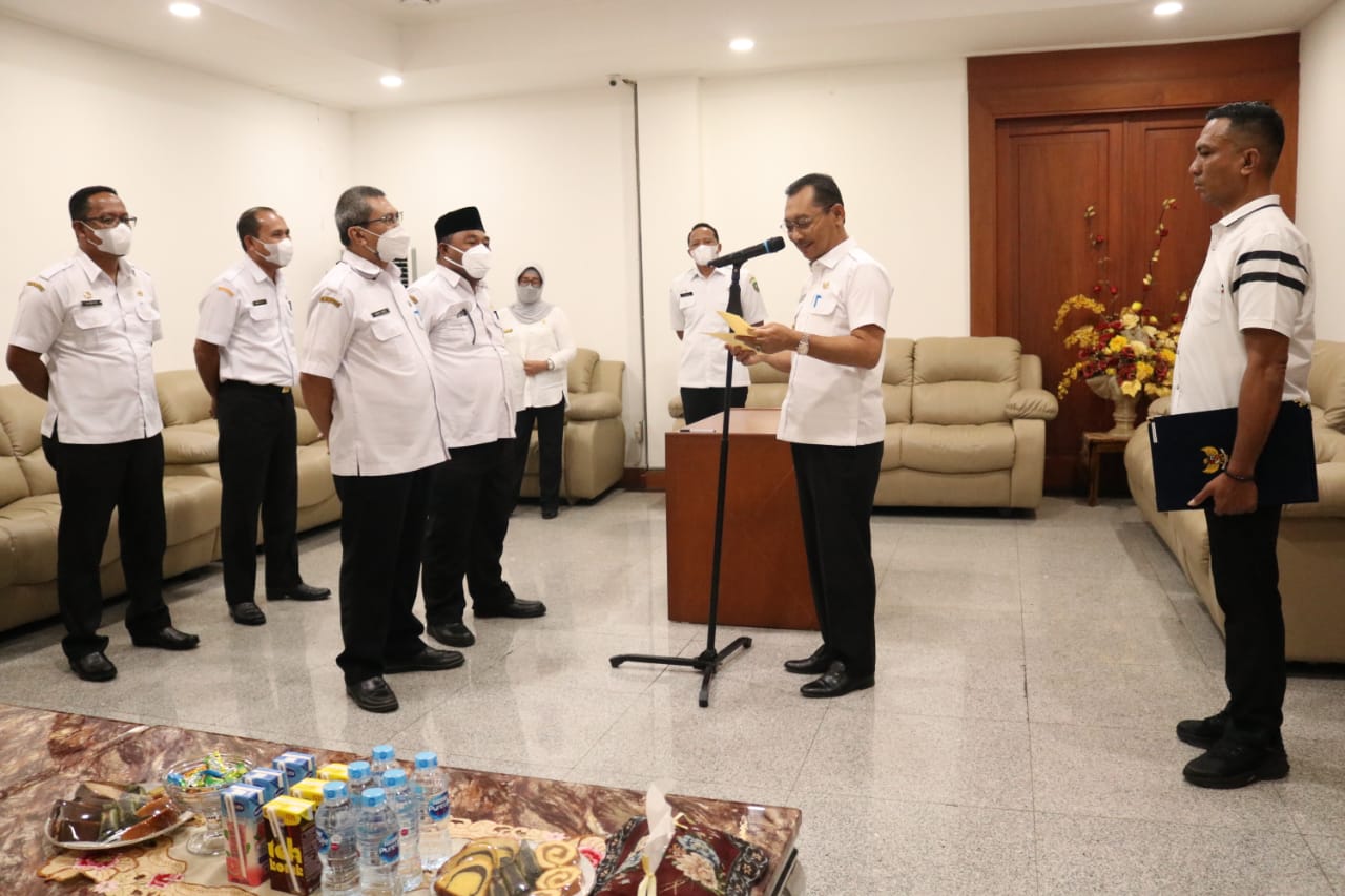 Ambon-Wakil Gubernur Maluku Barnabas Natanhiel Orno, melantik dan mengambil sumpah dua pejabat pimpinan tinggi pratama lingkup pemerintah provinsi Maluku, di kantor gubernur, Rabu, (29/6/2022).