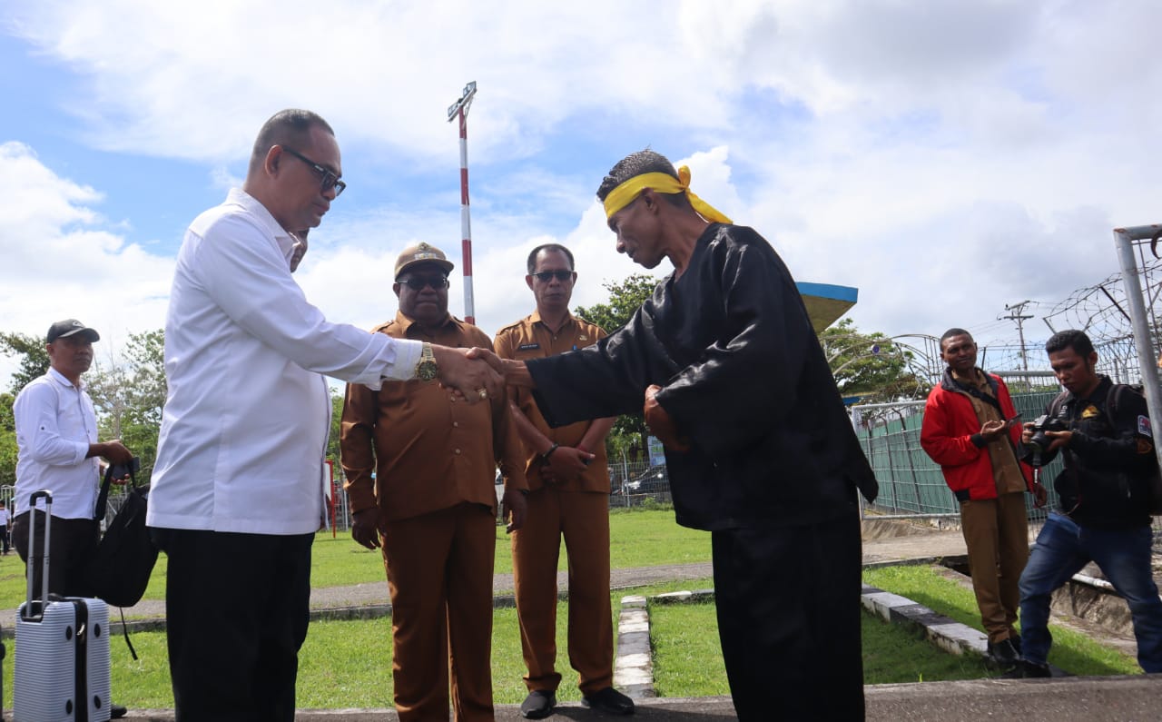 DOBO-Kepala Dinas Komunikasi dan Informatika Provinsi Maluku Drs. Titus F.L. Renwarin, M.Si. beserta rombongan disambut oleh Wakil Bupati Kepulauan Aru Muin Sogalrey, SE, Kepala Dinas Kominfo Kabupaten Kepulauan Aru Maxie Mussa, SP, dan Pimpinan OPD Lainnya, yang ditandai dengan pemasangan topi Tanakul khas Kepulauan Aru, serta disuguhkan tarian Cendrawasih, dan makan sirih pinang sebagai tanda ikatan persaudaraan dan kebersamaan di Bandara Rar Gwamar pada Senin (27/3/2023).