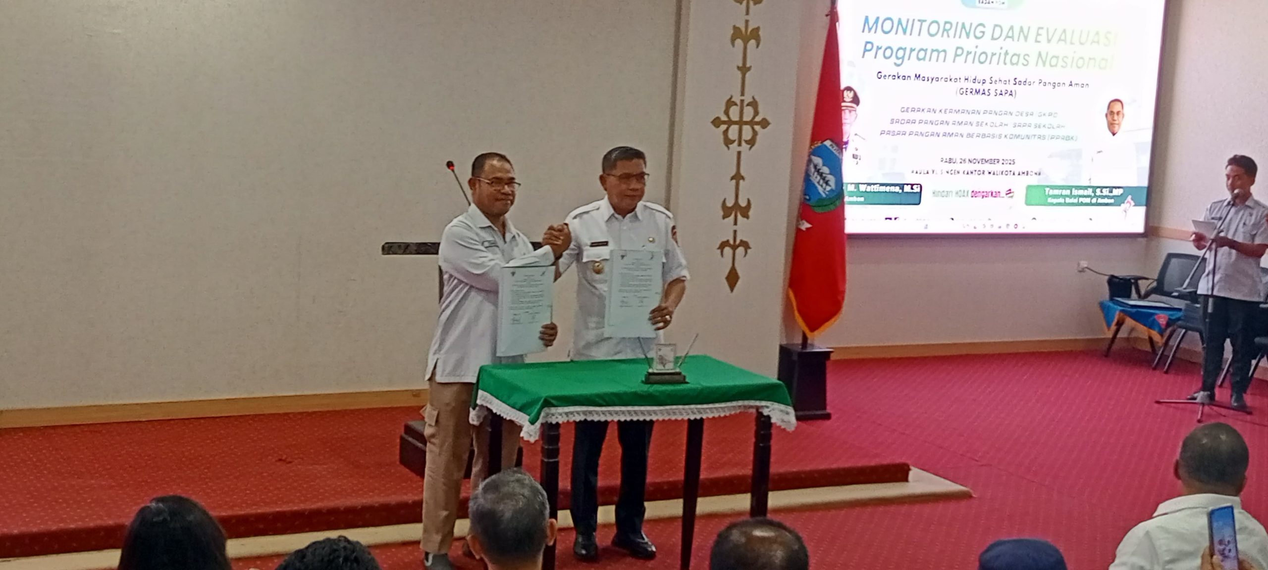 Hal ini disampaikan Wali Kota Ambon, Boedewin Wattimena pada kegiatan Monitoring dan Evaluasi Program Prioritas Gerakan Masyarakat Hidup Sehat Sadar Pangan Aman (GERMAS SAPA) yang berlangsung di Balai Kota,Rabu (26/11/2025).