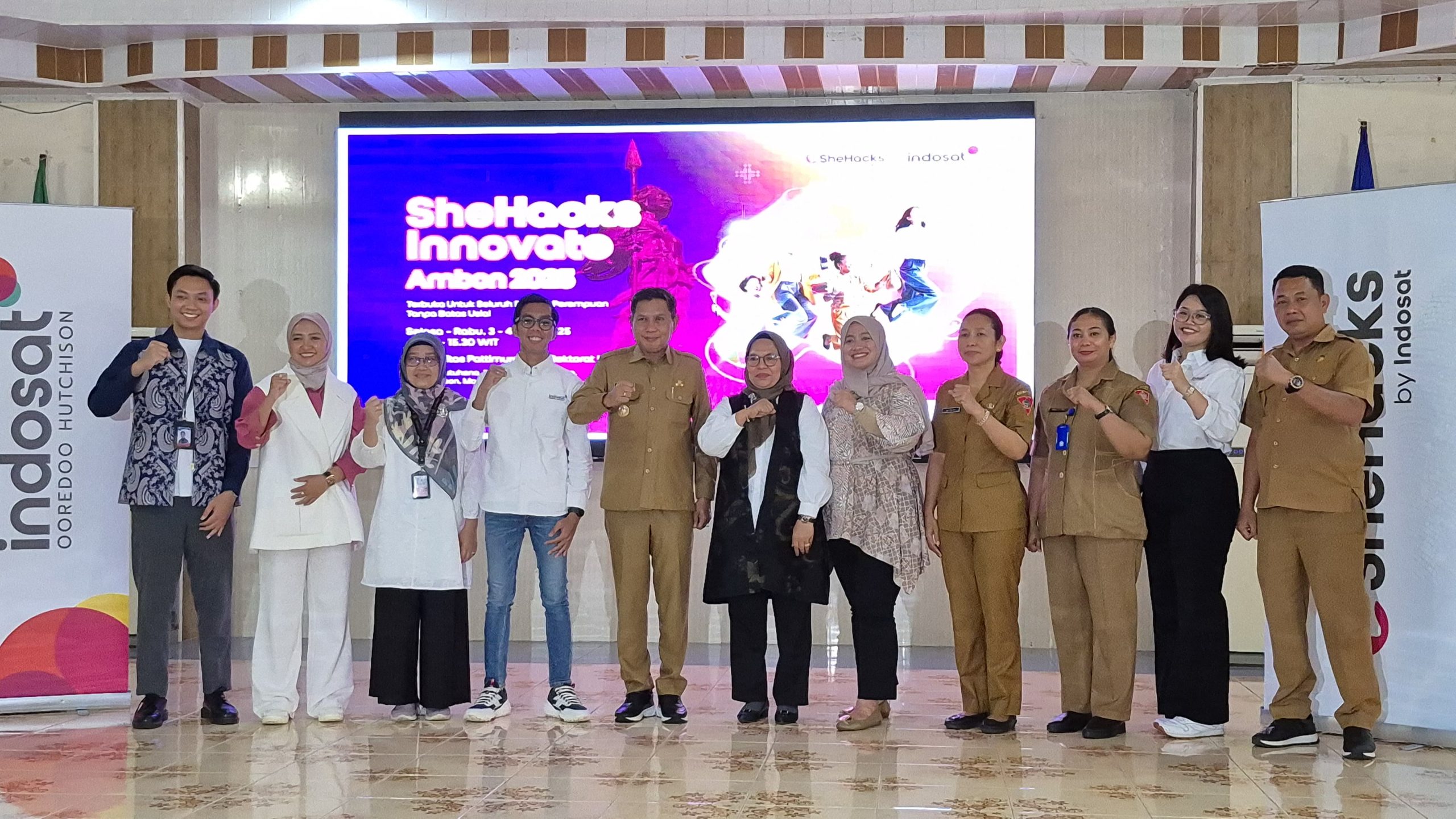 AMBON-Walikota Ambon, Bodewin Wattimena menghadiri sekaligus membuka secara resmi kegiatan Indosat Shehacks Innovate yang berlangsung pada aula Inspektorat Universitas Pattimura,Selasa (3/6/2025).
