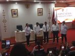 AMBON-Walikota Ambon,Bodewin Wattimena lakukan penyerahan 914 SK CPNS tahun 2024 yang berlangsung pada Tribun lapangan Merdeka,Senin ( 2/6). Seluruh calon Pegawai Negeri