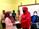 LANGGUR,N25NEWS.id-Isteri Gubernur Maluku yang juga Ketua Kwartir Daerah (Kwarda) Provinsi Maluku, Widya Pratiwi Murad Ismail, menyerahkan santuan kepada Kusadelina Kamaludin Rettob, korban
