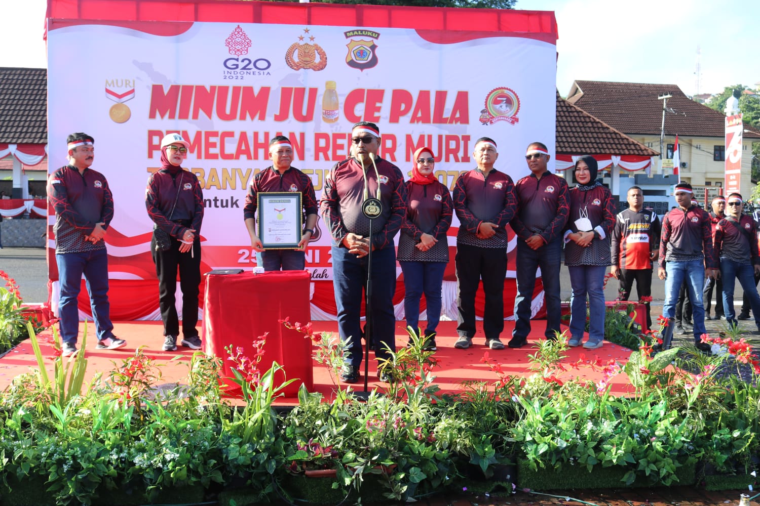 Dikatakan, pemecahan rekor MURI minum jus pala terbanyak sejumlah 16.076 botol dilakukan untuk memeriahkan HUT Bhayangkara ke-76.