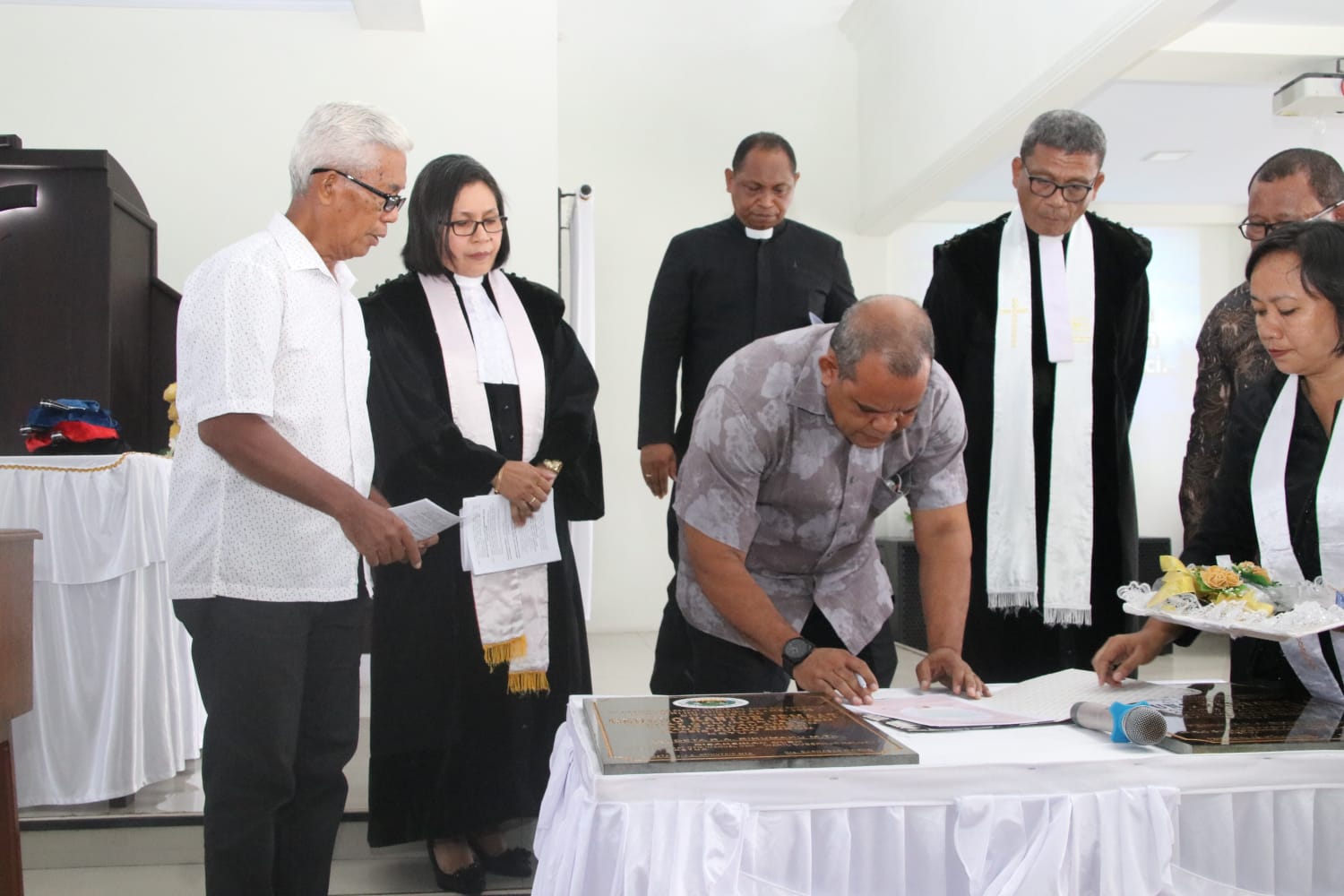 Ambon-Staf Ahli Gubernur Bidang Ekonomi, Investasi dan Pembangunan, Demy Lilipory, Minggu (22/5/2022) mewakili Gubernur Maluku, Murad Ismail menghadiri acara Peresmian Gedung Kantor dan Pastori IV GPM Imanuel OSM, Kota Ambon.