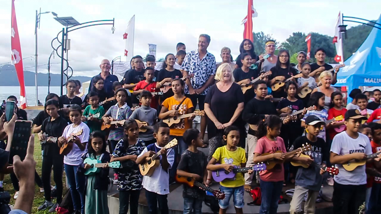 AMBON,N25NEWS.id-Amboina Ukulele Kids Community (AUKC) yang didukung oleh group-group ukulele dari Bere-Bere dan SMA Kristen Ambon menampilkan kebolehan mereka dalam bermain ukulele dengan membawakan lagu-lagu Barat dan Ambon buat partisipan Australia.